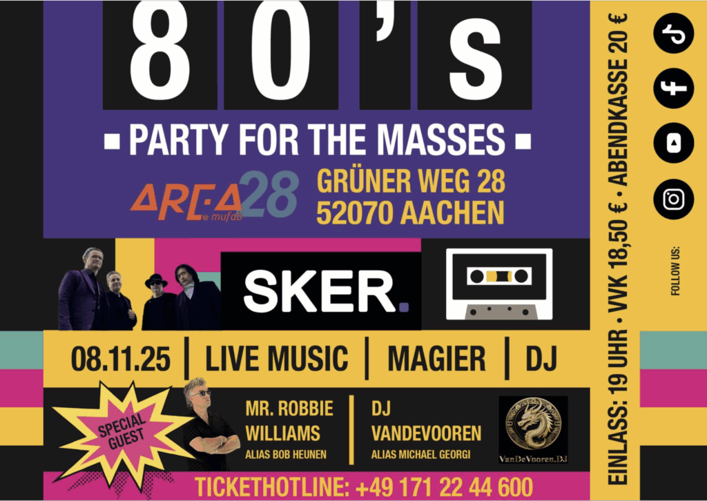 Abfeiern mit SKER. im 80er Jahre Stil am 08.11.2025 in Aachen